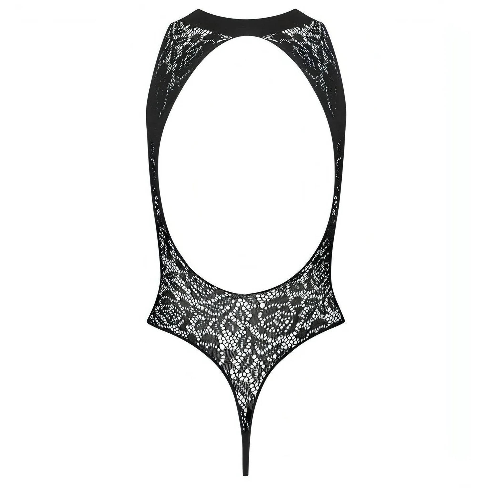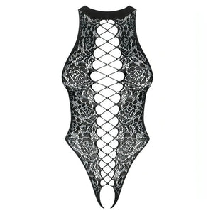 Body Sexy Nero Con Ricamo Floreale, Spacco Centrale e Apertura Inguinale - Taglia S/L