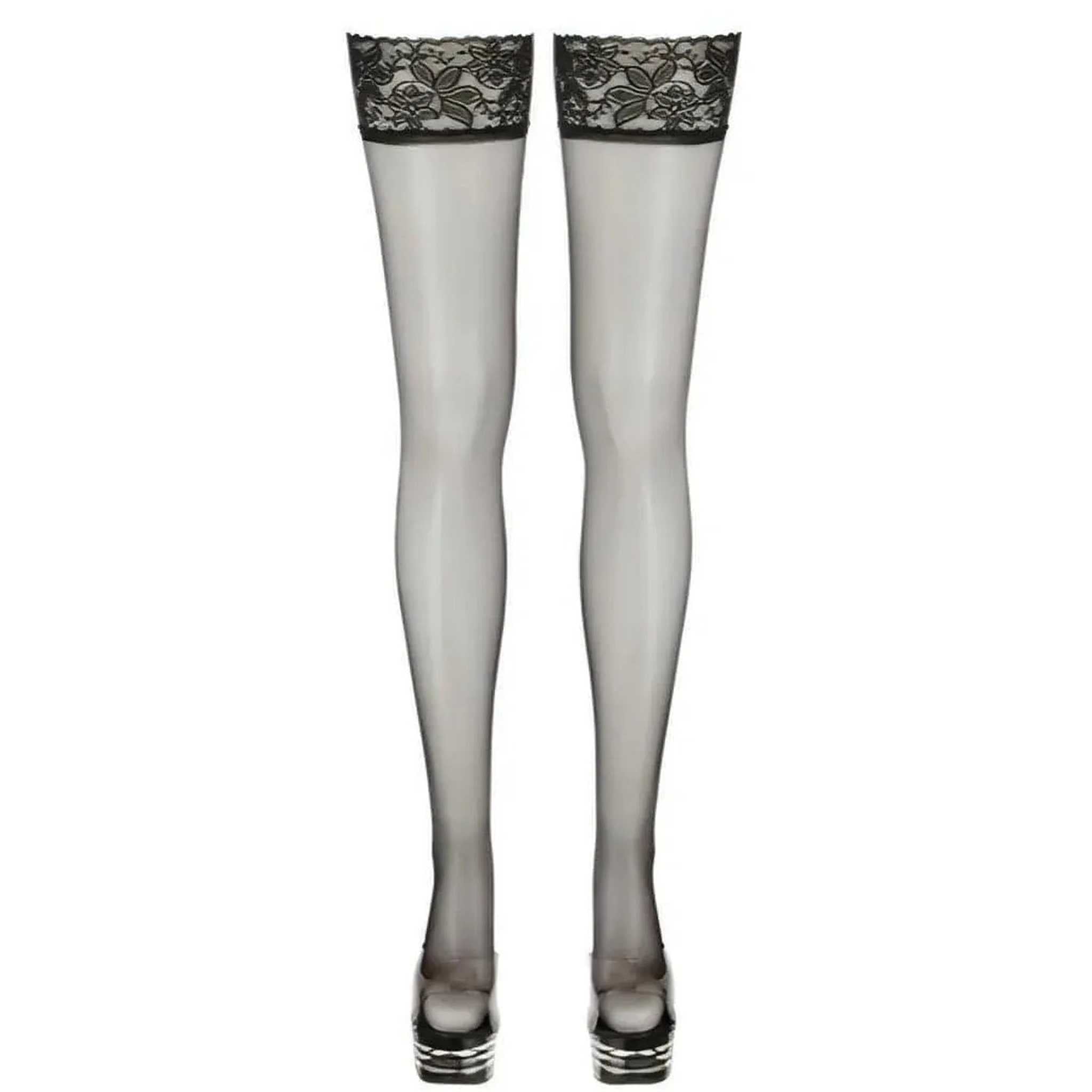 Calze nere velate con balza in pizzo - Taglia Unica