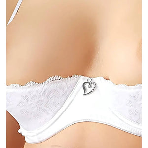 Completino Sexy Bianco 3 pezzi: Reggiseno A Balconcino, Reggicalze con Lacci Centrali/Laterali e Perizoma Con Apertura Inguinale