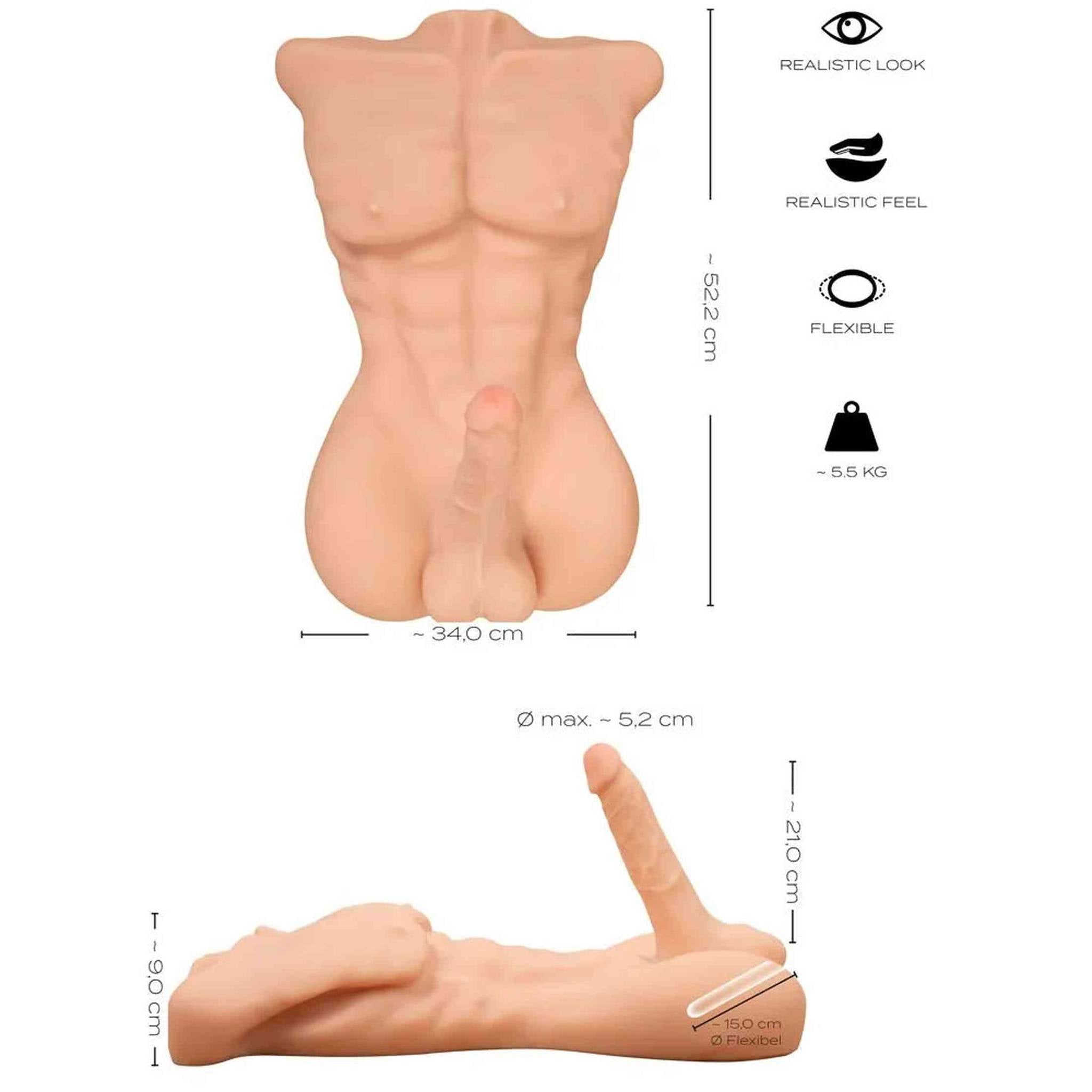 Deluxe Torso Uomo Muscoloso Super Realistico con dildo 52 x 34 cm