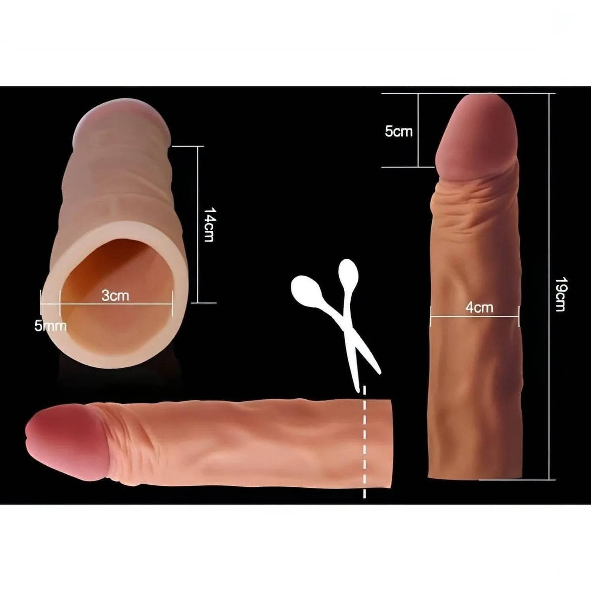 Guaina Fallica Realistica Morbida 19 cm lunga con un'estensione di 5 cm - Mulatto
