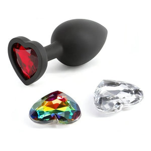 Plug Anale in Silicone con Gemma Intercambiabile – Cuore, Small