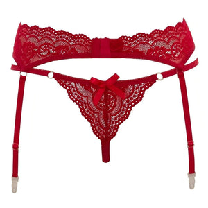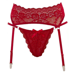 Set Reggicalze E Perizoma In Pizzo Rosso