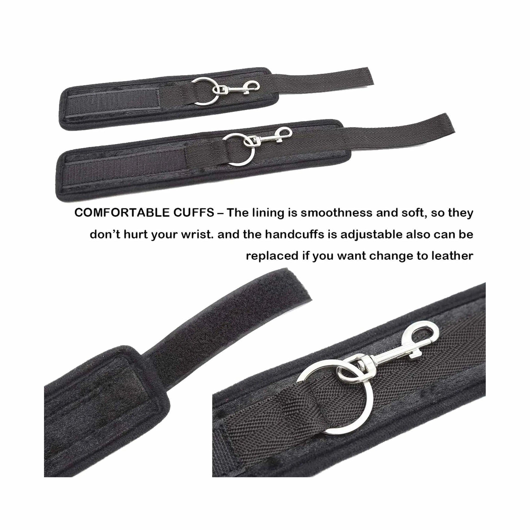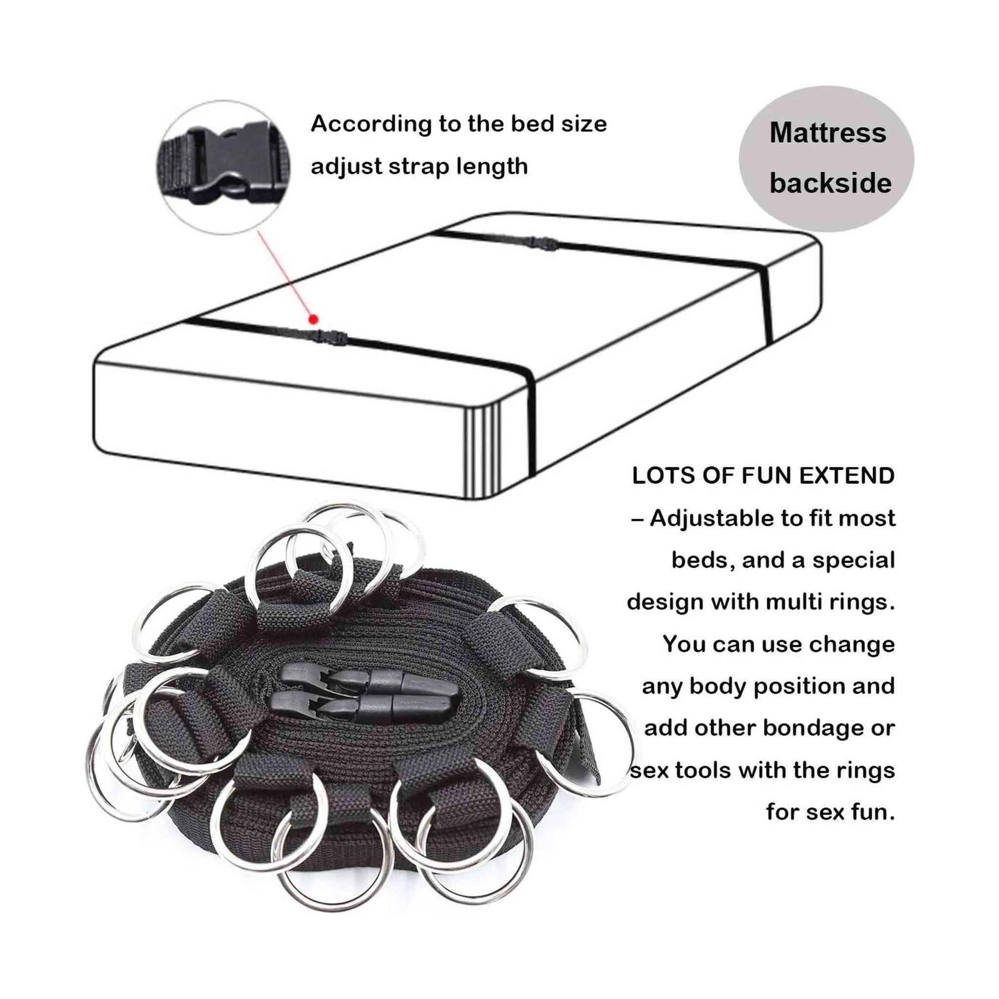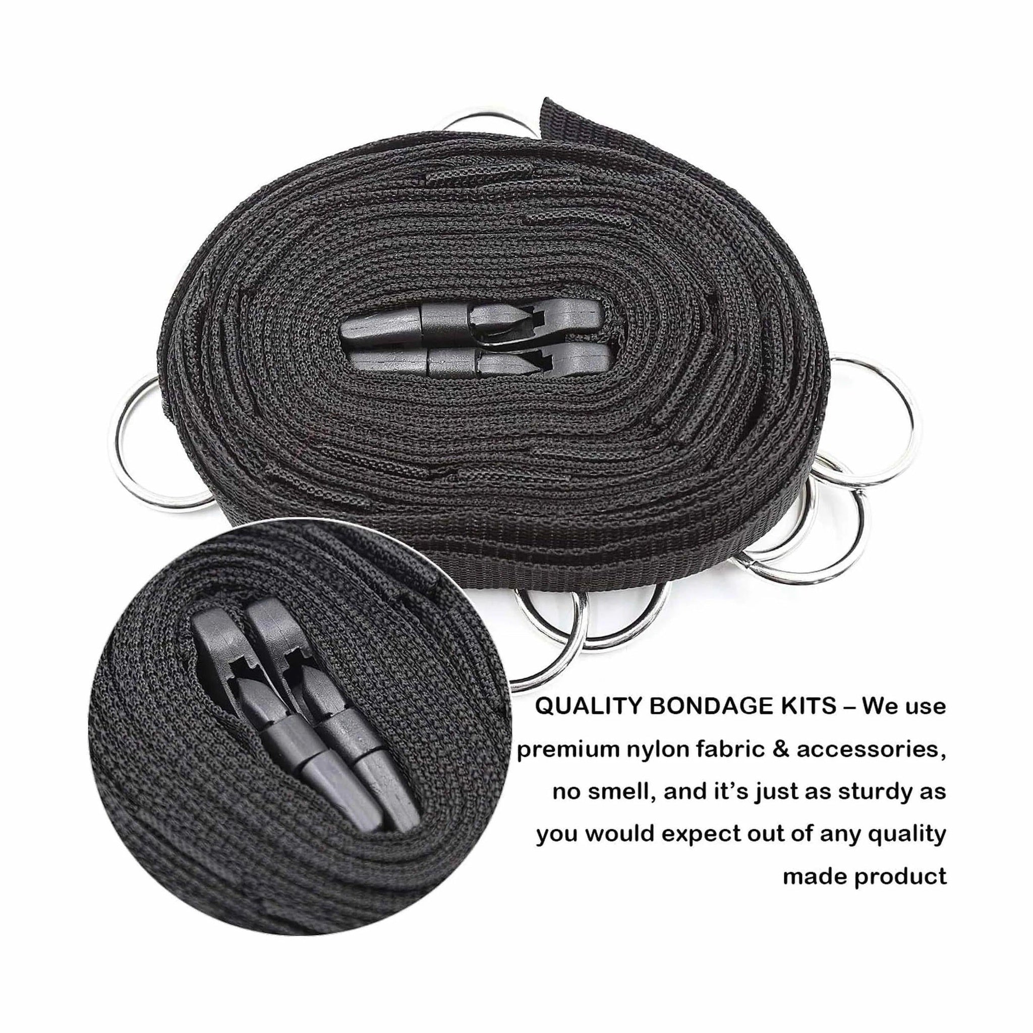 Straps da letto o da parete con 5 ganci per cavigliere o polsiere - Nero Lunghezza regolabile fino ad un massimo di 580 cm