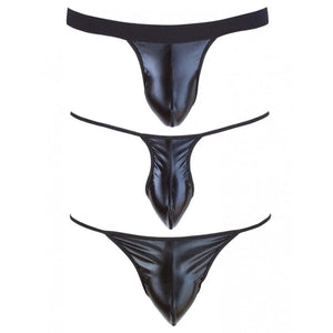 Vynil Set da 3 Pezzi: Jockstrap, Mini String e Perizoma - Nero, Taglia Unica